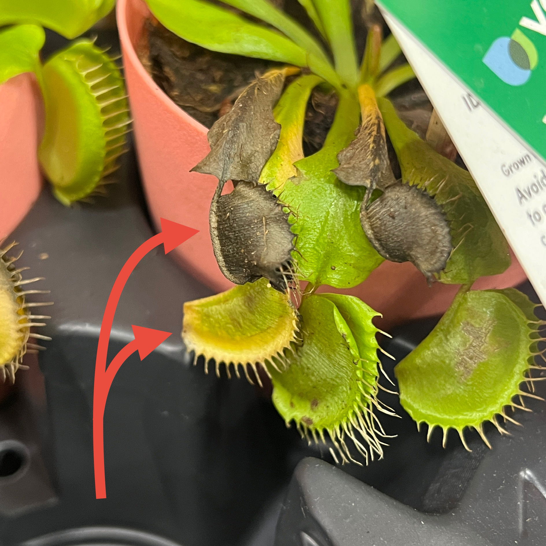 Alternatively, too much sunlight will lead to sun scorch, with typical signs including browning or crispy leaves, dry leaf-edges, sunken leaves or stunted growth. This is very rare to occur as Venus Fly Traps can tolerate a lot of sunlight when kept indoors. Remove any dead or burnt leaves and maintain moist soil to encourage fresh growth within the next six weeks.